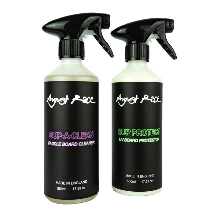 The SUP Kit is made up of the SUP Cleaner and SUP Protect. It is a complete care package for your inflatable or rigid paddle board. T The SUP Cleaner (Step 1) quickly restores the appearance of your board often to like new condition and the protector give a sheen finish and acts to reduce water drag. The SUP Cleaner is a specially formulated mix of low foaming detergents to gently remove salt, algae and carbon from inflatable or rigid boards, helping to prevent cross contamination of water courses.