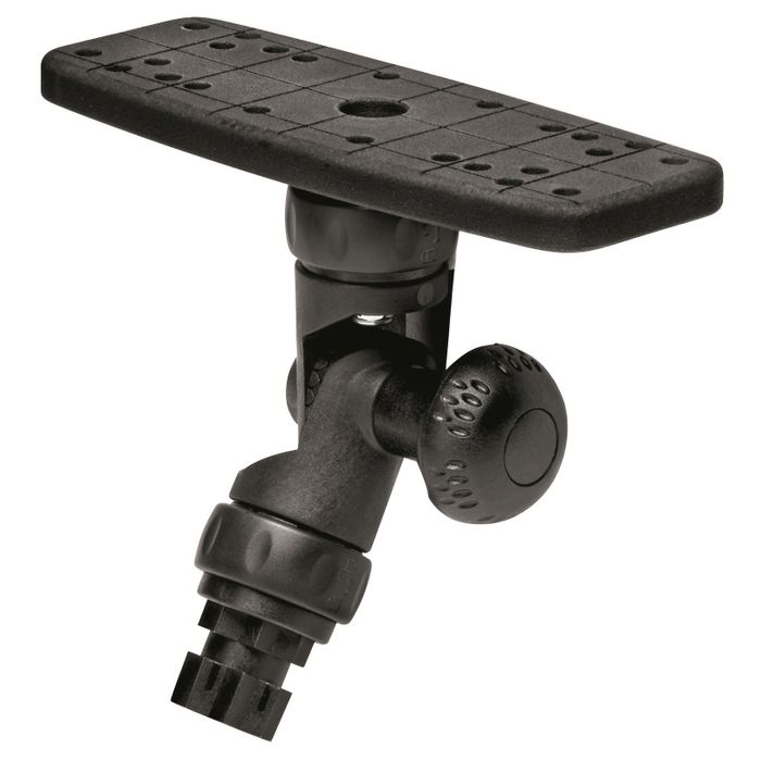 This 3 axis mount has friction joints top and bottom featuring R-Lock lockable joints (pat pending). The centre joint is fully adjustable in 15-degree increments. Will take fish finders up to 1.5kgs (3.3 lb). Mount on an angled surfaces and have your display level!